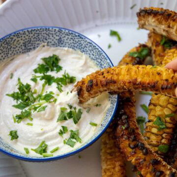 - Coat with powdered/grated parmesan after the corn ribs have been baked/air fried along with dried herbs.